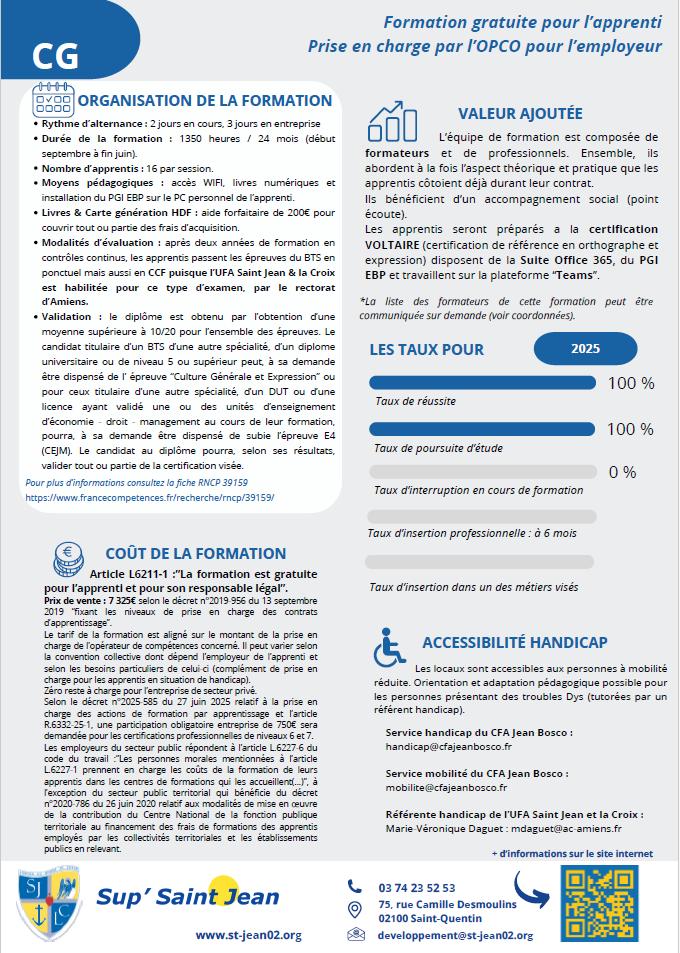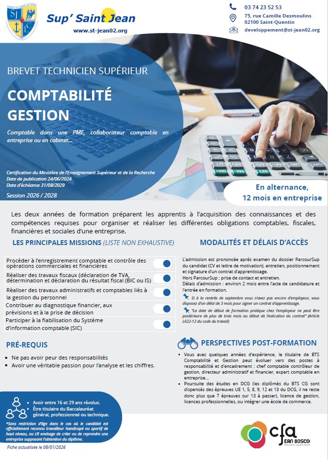 BTS Comptabilité et Gestion – CG (Apprentissage)